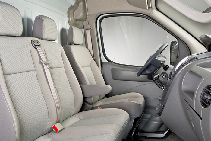 De drie zitplaatsen bieden alle steun en comfort, ook voor langere ritten. De sterke bekleding van de stoelen en de rubberen vloermat zorgen voor een onderhoudsvrij interieur.