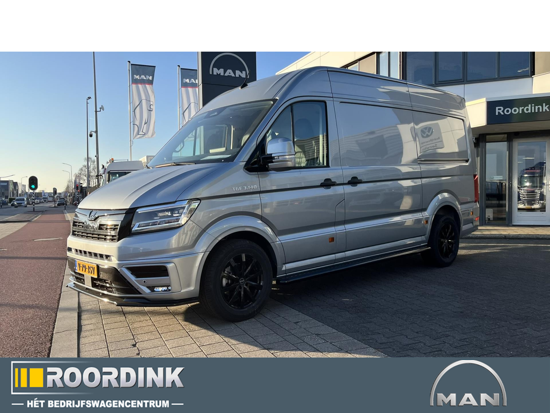 De MAN TGE 3.140 L3H3 18" LMV, sidesteps, frontspoiler, rondom in kleur, getinte verlichting en zonneband, leder, Super compleet !!!